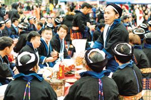 每逢重要節(jié)日,白褲瑤群眾都有舉辦長席宴的習(xí)俗。以前,芭蕉葉當(dāng)作盤子,芭芒干折成筷子,一個(gè)飯團(tuán)、一塊牛肉,再加一碗酒,就是長席宴的全部。現(xiàn)在改變了很多,但不變的是白褲瑤自然、和諧、平等的美德。2019年2月拍攝。