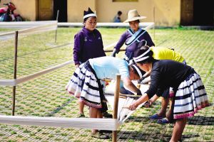 白褲瑤服飾制作需要幾個(gè)月的時(shí)間,經(jīng)過紡紗、織布、描圖、蠟染、刺繡、縫制等30多道工序,其中許多工序都受季節(jié)和天氣變化的影響。