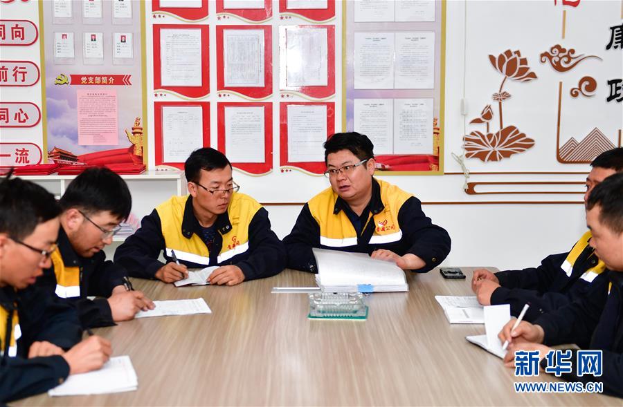 1月11日,在青藏鐵路望昆站,于本蕃(右三)召集工友開會商定施工方案。