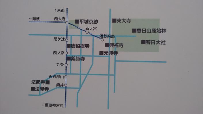 奈良時代雖不到百年,在日本文明史上卻留下了永久的痕跡。奈良地區的世界文化遺產共有9處,其中6個為寺院,最重要的寺院為法隆寺與唐招提寺。另7處為:東大寺、春日大社、春日山原始森林、元興寺、興福寺、平城宮跡、藥師寺(圖二十五)。