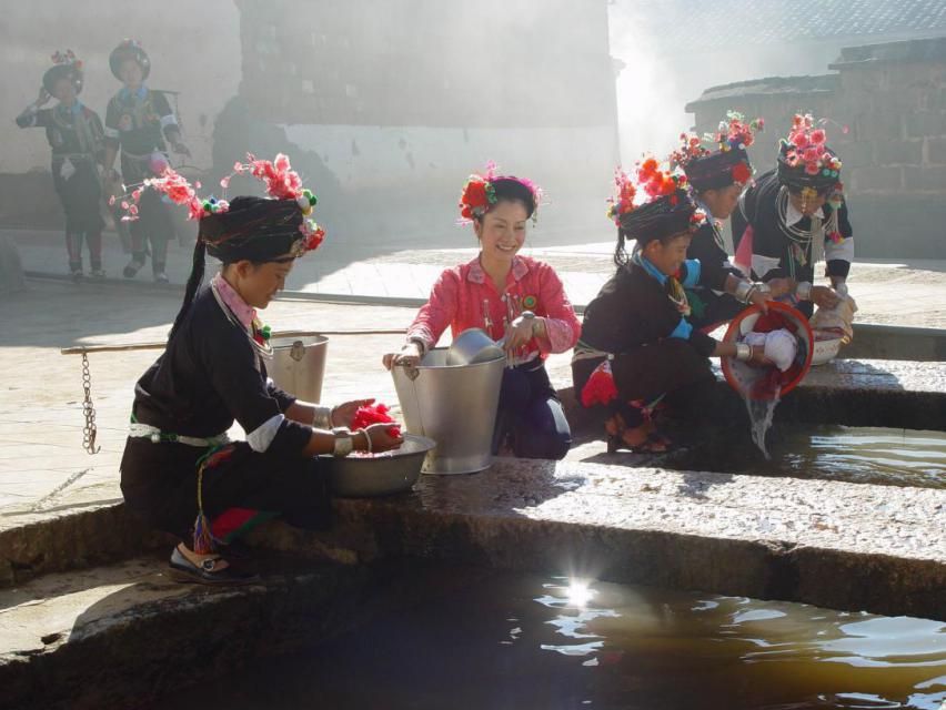 各地男子的服飾大同小異,均留短發,未婚男子包一頭或兩頭鎖彩邊的白布或黑布包頭,已婚男子包藏青色布包頭。青年男子的包頭上往往插有鮮花或絨球飾。穿藍、白、黑等素色斜紋布對襟布扣袢上衣,黑色或藍色長褲,系黑色綁腿。未婚婦女留長發盤辮。穿白、藍色對襟銀扣上衣,黑、藍色長褲。系繡花飄帶黑布裙。