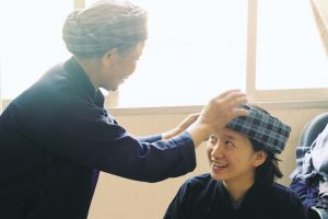 訂做講究量體裁衣,蘇阿姨有個小本子,專門記錄客人的身量。上面能看到衣長、腰長、袖長、領長和住址,可唯獨不知道她們真正的名字。布依族女人的名字,一生都在變化?;榍暗男∶坏┙Y婚有了孩子就變成“媽”加長子(女)的名字。等做了奶奶,又會變成“奶”加長孫子(女)的名字。我仿佛看到她們把自己越縮越小,隱身在家庭之后。