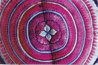 另外,土族服飾的演變,還源于關(guān)于丹陽公主化為金色鳳凰的傳說,人們?yōu)榧o念她而穿鳳凰羽毛一般華麗的服飾。因而,土族婦女至今仍然保存著身穿綠色夾襖,下穿緋紅色百褶裙,腳穿繡花翹尖鞋的裝束。裙子是三川婦女獨有的服飾之一,土族語稱之為“禾兒莫”。根據(jù)著裝者的年齡大小,裙子有鮮紅、粉紅、紫紅三種,材質(zhì)多選用棉布、綢緞,為了耐臟,下擺處還鑲有一圈寬25厘米的黑布。黑布與紅布的連接處鑲有兩道花邊,使紅色百褶裙更為好看。過去,婦女除了下地干活和下廚外,都必須穿裙子,否則會被視為無禮。