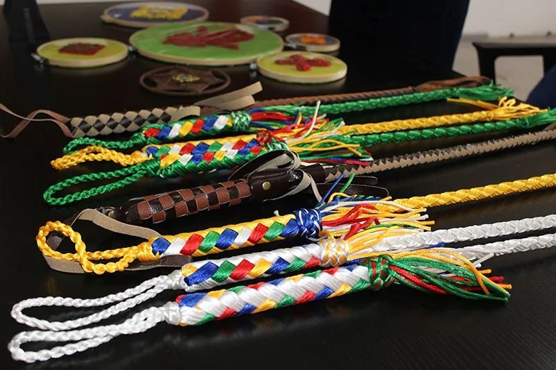 科爾沁繩結技藝是通遼市科爾沁區一項傳統民間技藝,它是從中國古老的繩結技藝發展而來,逐漸形成了自己的特色和體系,產生了《蒙古馬鞭》、《蒙古捕夢網》等代表作品。作品主要來源于游牧民族生活中的日常實用,比如馬龍套,馬鞭,固定蒙古包的綁繩,蒙古服的扣子等。2018年《結繩技藝》確定為盟市級非物質文化遺產項目。近年來隨著國家對非物質文化遺產的重視和大眾對于“中國結”的關注,科爾沁繩編又重新走入人們的視野。科爾沁繩編技藝傳承人經過多年的研習和挖掘,創造了很多經典作品,使這門古老的技藝煥發出新的光彩。