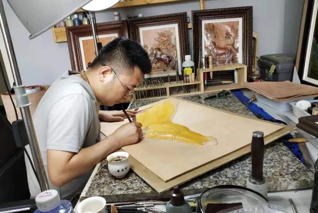 包頭市東河區皮雕畫非遺項目傳承人張衛祥,2012年畢業于中央美術學院,受老師影響,畢業后一直致力于把皮雕與古代山水畫結合,使皮雕畫展現出古樸典雅的風格,許多皮雕作品屢屢獲獎。