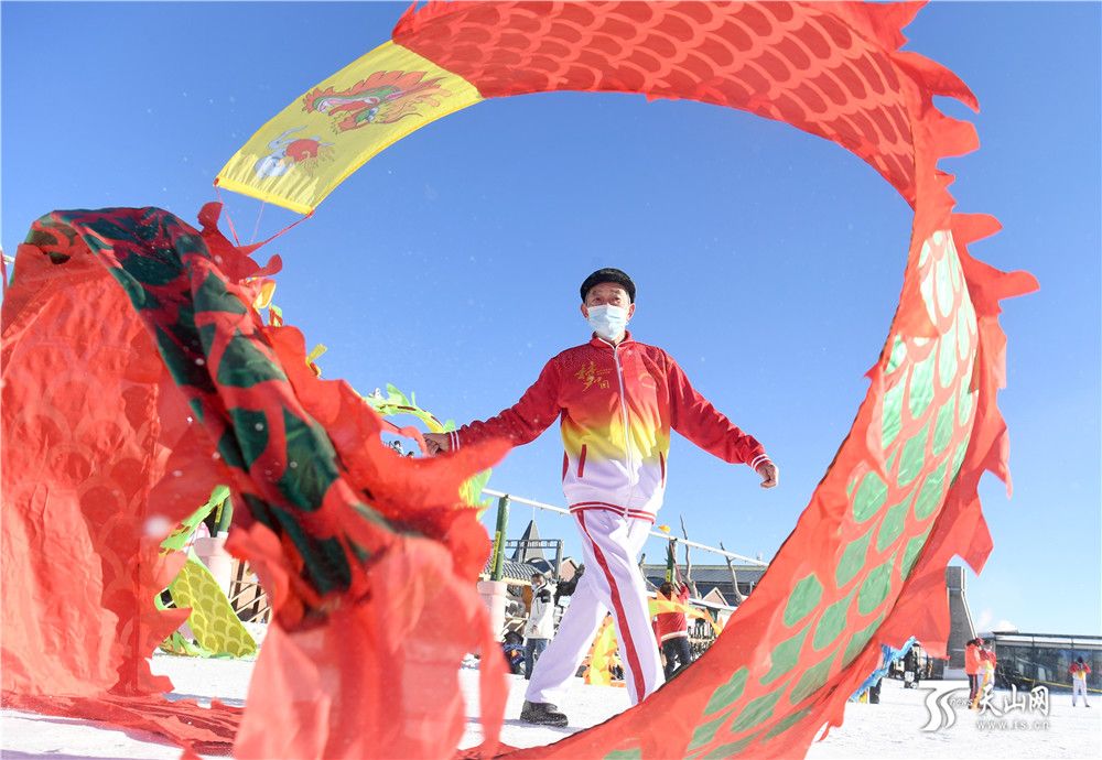 12月3日,烏魯木齊市民在絲綢之路冰雪風情節上舞龍。