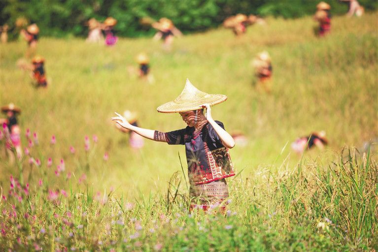 11月21日,在白沙黎族自治縣青松鄉擁處村、青松村等村莊的山坡上、山谷里,放眼望去,在群山疊翠間,漫山遍野都是金黃色的山蘭旱稻,這般豐收的場景尤為賞心悅目。當天,2021年白沙“啦奧門”山蘭文化節在青松鄉擁處村啟幕,活動旨在讓更多的人知曉海南黎族山蘭旱稻的農耕文化,進一步提升“啦奧門”山蘭文化節民族品牌活動的影響力,助力鄉村振興“加速跑”。