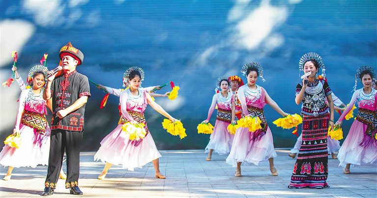 2021年白沙“啦奧門”山蘭文化節中的歌舞表演。李天平 攝