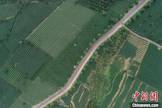 航拍貴州湄潭境內的茶園。 瞿宏倫 攝