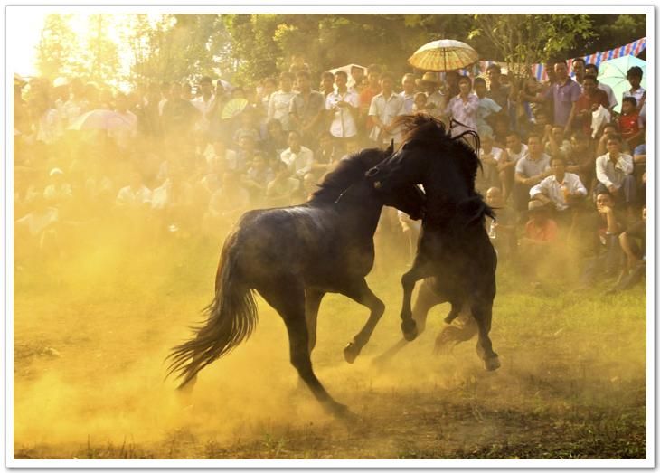 斗馬場上,常有成千上萬人圍觀。觀眾情緒高漲,歡呼吶喊聲此起彼伏。比賽結束,奪得優勝的馬主,則牽著披紅掛彩的斗馬繞場一周,接受觀眾的祝賀。