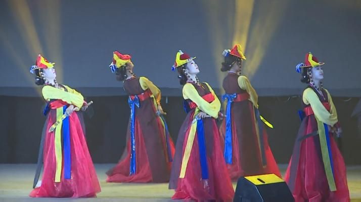 關于刀舞的由來,也有一段令人神往的傳說。新羅國有位名叫黃昌郎的壯士,7歲的時候就能揮舞長劍表演,氣勢如虹。他一人來到百濟市舞劍,觀眾圍得里三層外三層,深深為他的劍術所吸引。百濟王聽說以后,召黃昌郎入宮表演。黃昌郎借舞劍之機,刺殺百濟王,結果最終被人殺害。新羅國的人民為了緬懷黃昌郎的義舉,面帶假面具,手持折半的刀,照他從前表演的舞姿跳舞。刀舞于是由此而來。刀舞與劍舞一樣,雄壯、勇猛、躍動的舞姿貫穿舞蹈的全過程。刀舞有很強的隨意性,沒有統一的套路,舞者的基本動作合著打擊樂節奏可隨意發揮。舞蹈反映了朝鮮族人民勇敢、大膽、智慧、樂觀的民族氣概。舞蹈姿勢剛柔相濟,激舒并存,急緩相容,像疾風般的向前沖,左右猛刺,輕快猛移等動作,“喀嚓”、“喀嚓”的揮刀聲以及浪漫的舞態,給人以強烈的號召感,體現了朝鮮族舞蹈的高超技藝。