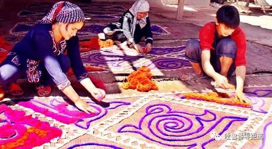 試想,一處古老的維吾爾族院落里,土質的院墻和房子將一家人聚攏在一起,走進這家人的客廳,整潔而舒適,印花布的身影隨處可見:長條形的藍色印花布作為床圍;?一張方形的印花布被鋪在桌子上?與餐盤、茶具相互映襯,?恬靜和諧;?坐墊套、窗簾……?印花布的身影無處不在,點點滴滴地點綴著這家居室,也將女主人的心靈手巧表現得淋漓盡致。?這是怎樣一幅遠古家庭的生活場景啊?