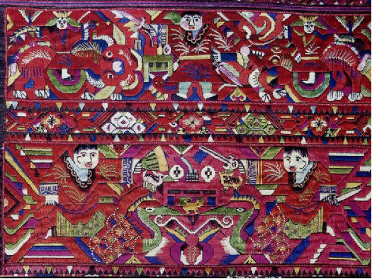 貴州施洞苗族刺繡種類繁多,刺繡手法有平繡、縐繡、絞繡、破線繡、鎖繡、打子和布貼等多種。手工技藝還涉及剪紙、織錦等多種工藝。苗族刺繡的圖紋造型非常的豐富而多彩,施洞主要以苗族破線繡最為珍貴,具有極高的研究價值和開發價值。