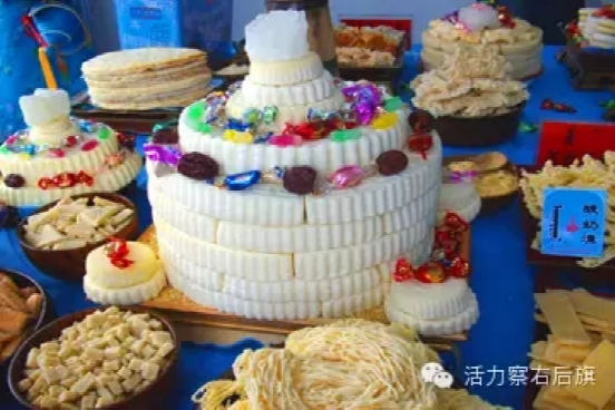 美味之一奶食:草原上的食品之首便是奶食。況且察哈爾人民在歷史上為宮廷專供“奶食”的部落,所制作的奶食品品種豐富、名目繁多,做法千姿百態。奶食在蒙語中稱"查干意德(ChagaanYidee)",俗稱白色食品。奶食大體可分為液態奶食、固態奶食兩類。液態奶食有鮮奶、淖勞日、爵亥、白油、酸油液、黃油、酸油渣、乳清、酸奶、熟酸奶、酸乳等。固態奶食有奶皮、奶豆腐、奶雜子、松葫蘆、酸奶酪。奶食品中含有大量的氨基酸、蛋白質、油脂、微量元素,對人體機能有著不可缺少的營養成分,增強免疫力,有保健作用。奶食也被視為珍品,每逢拜年、祝壽、招待賓客、喜慶宴會等首先以品嘗奶食、敬獻奶酒為最美好的祝愿,這是一種神圣的禮節。