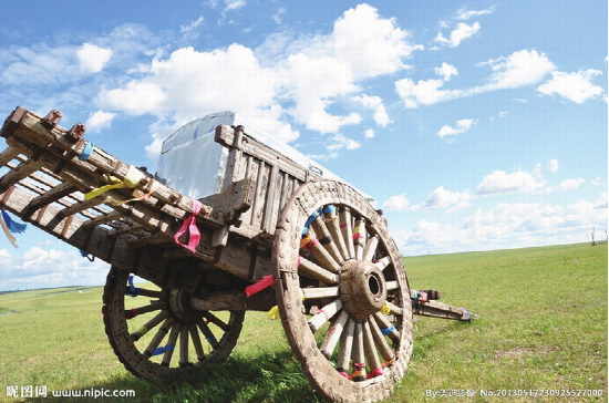 蒙古族牧民常用的一種木制大輪車。多用樺木或柳木制做。車輪高約1米,車身重約百斤,可載重300—450公斤,日行約30余公里。每車用一頭牛來拉,一人可駕馭數(shù)輛,適于在草原、沙漠、雪地等行走。亦可將數(shù)十輛勒勒車首尾相接形成近百米長的車隊,十分壯觀,也形成了草原上特有的風情。現(xiàn)在已多被膠皮鐵輪的軸承車所替代。另外還有一種“蒙古轎車”,是一種在勒勒車基礎上經(jīng)過改造專門乘人的車。其與勒勒車不同之處在于車體上有用柳條子彎曲后扎成的車棚,棚子的外面用毛氈包圍,形成一個既擋陽光,又擋風雨,防曬御寒的帳篷。