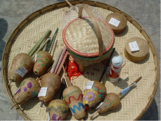 2010年上海世博會活動周期間,一臺名為《記憶云南》的18項非物質文化遺產展示成為最吸引眼球的亮點之一?;顒蝇F場,18名云南非物質文化遺產傳承人和民間藝人展示白族布扎、納西族東巴畫、傣族剪紙、傣族竹編、佤族織錦技藝等制作技藝。其間展示的傣族竹編技藝在民族文化風情濃郁,文化底蘊深厚的耿馬傣族佤族自治縣廣為流傳。俗話說傣族“無竹不成家”,自古以來,傣族就和竹子結下了不解之緣。傣家人生活地區大多竹資源豐富,他們在飲食上喜歡吃鮮竹筍和用竹筍腌制的酸筍,各種生活用具也多用竹制作而成。在翠竹掩映,綠色蔥籠的耿馬傣族村寨,傣家人尤其愛竹、用竹,并擅長竹編技藝,他們擅用竹子為材料搭橋、蓋屋,住的是竹樓,用的是各式自編的竹器,大至籬、墻、門、毯笆、竹筏、床、桌、柜、席,小至飯盒、帽、扁擔、簍、提籮、甑子、供桌、鼓凳等,無一不是用竹編織而成。有的竹編還鑲嵌五彩圖案,富麗堂皇,專供佛寺祭掃之用,而各種精美的竹編小物品則是男女青年表達愛情的信物。傣族竹編歷史悠久,世代相傳的竹編技藝,具有鮮明的民族特色。耿馬傣族竹編工藝精細,造型樸實大方,圖案變化美觀,制品種類繁多,是優良的實用工藝,其中以笆蘿、飯盒、檳榔盒、提籮、供桌的竹器編織技術最有代表性。笆蘿是傣語,指的是一種掛在腰間的竹簍。笆蘿編織精巧,美觀適用,既是生產、生活用具,又是精致的裝飾品。傣族婦女身著輕盈飄逸民族服裝,腰系一只笆蘿,走動時笆蘿隨身輕松搖擺,顯得十分樸實、精干、健美、俊俏。更為珍愛之處在于,笆蘿是傣族青年男女間愛情的傳遞物。傣族男子從小學習竹編,人人都有一手精湛的竹編技藝,青年男子總是精心編織一只笆蘿送給自己心愛的姑娘,換回一個姑娘回贈的親手織繡的筒帕。所以編織笆蘿和織繡筒帕是傣族青年“編織愛情的技藝”。如果一個小伙子不會竹編,那么他就同姑娘不會織繡一樣,說明他沒有一雙勤勞靈巧的雙手,很難找到心愛的伴侶。耿馬傣族民間竹編漆器工藝歷史悠久,世代傳承其竹編漆器主要有貢桌和提籮,傣語稱“浪擺”和“撒毫”。 “撒毫”和“浪擺”是傣族群眾從事佛教活動時的必需用品,家家戶戶都備有一套。每到潑水節或開門節、關門節時,傣家老人用“撒毫”裝各種禮佛用品,子女們則用“浪擺”和“撒毫”給父母送齋飯。平時則置于高處,不能亂放東西。僅“撒毫”的制作流程,便可分為選竹、破篾、編制、裝飾等10道工序,裝飾工藝獨特精美,集實用性和觀賞性于一體。由于傣族人民篤信佛教,竹器漆制品較多裝飾荷花、魚、蝴蝶等圖案,寓意祈求佛祖保佑,賜福予人風調雨順、吉慶有余。傣家竹編,既為人們生產生活所必需,也給人美的享受,真是民族工藝百花園的一朵奇葩。