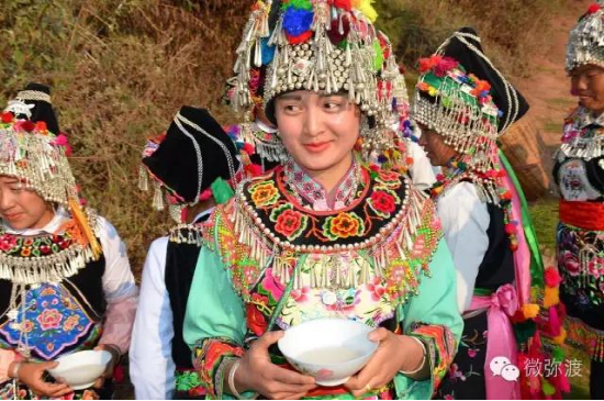 “羅羅潑支”男女服飾的特點(diǎn):“羅羅潑”男子服飾與“迷撒潑”相差無幾,一般不戴白頭巾。但是婦女的服飾相差卻很大,明顯保留著古樸高雅的南詔遺風(fēng)。頭飾由桂花、包頭、飄帶、大墜子、蜜蜂墜、芝麻鈴組成。桂花墊子在裱布上蒙黑色面料,中間訂有銀飾。包頭以黑色為主,長約2米,后鏈系于包頭,鏈子為銀制。飄帶長約4尺,黑色留花邊,兩頭訂英蘇。包頭還系有大墜子、蜜蜂墜各一對(duì),芝麻鈴20個(gè)。領(lǐng)合由裱布黑色面料上訂芝麻玲20個(gè)圍在脖子上。圍腰的前胸部,由領(lǐng)口至腹部,左右各垂掛一條綴有串珠、針筒、響篾(口弦)一類飾品和生活用品的銀質(zhì)項(xiàng)鏈。人一走動(dòng),全身的小蘇鈴就響,聲音悅耳動(dòng)聽,形象美觀大方。額頭前還圍有一塊翠綠色的“桂花綁”,綁上釘有銀質(zhì)小泡泡200多顆,羅羅潑支婦女的服飾彰顯華麗之美。