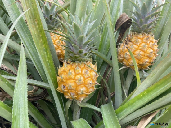 “我現在再砍去一些菠蘿的葉子,防止采收時割傷,同時讓太陽曬到菠蘿,讓菠蘿更好吃。”菠蘿地里,金黃的菠蘿隱藏在綠色的“皇冠”和葉片之下,馬停紅正在修剪菠蘿葉。