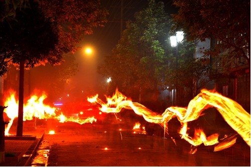 火把燃燒了四、五個(gè)小時(shí),就剩最下兩層了,都是火紅的炭火,等最后一層柴燒得掉下來了,大家就爭先恐后去搶燒殘的柴塊,拿回家插在豬圈上,豬就養(yǎng)得更肥了。