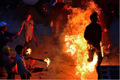 劍川的火把節(jié),還是增進(jìn)親友情誼的一個(gè)紅火節(jié)日。到燃燒著的火把樹下玩,烤著火把節(jié)的火,在火光中歡樂談笑,平時(shí)見面只打招呼的人喝酒碰杯,說句貼心的話,情誼一下子就升華了。