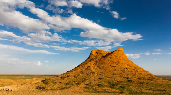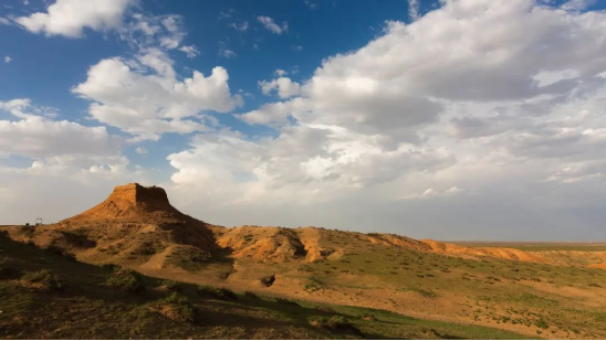 (東紅烽火臺(tái),位于海南區(qū)巴音陶亥鎮(zhèn)東紅村,整體為紅黏土夯筑而成,現(xiàn)高9.3米)