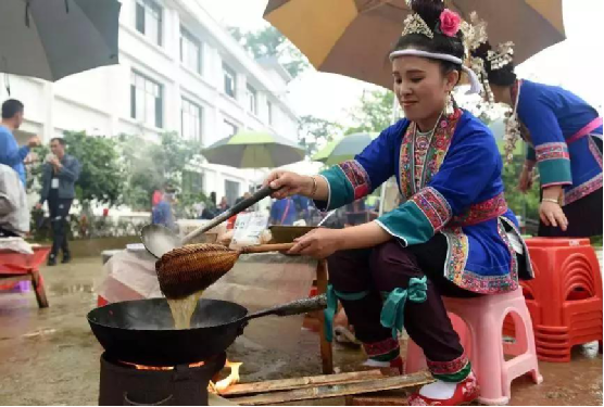 打油茶是侗族特有的一種飲食習(xí)慣和待客禮儀,起源于唐代,侗家油茶用糯米、茶油、茶葉、食鹽等原料精制而成,具有香、酥、甜等特點(diǎn),能提神醒腦助消化,已于2014年列入廣西區(qū)級(jí)非遺名錄。