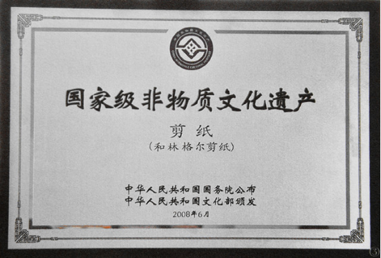 2008年,和林格爾剪紙被國務院公布為國家級非物質文化遺產代表名錄