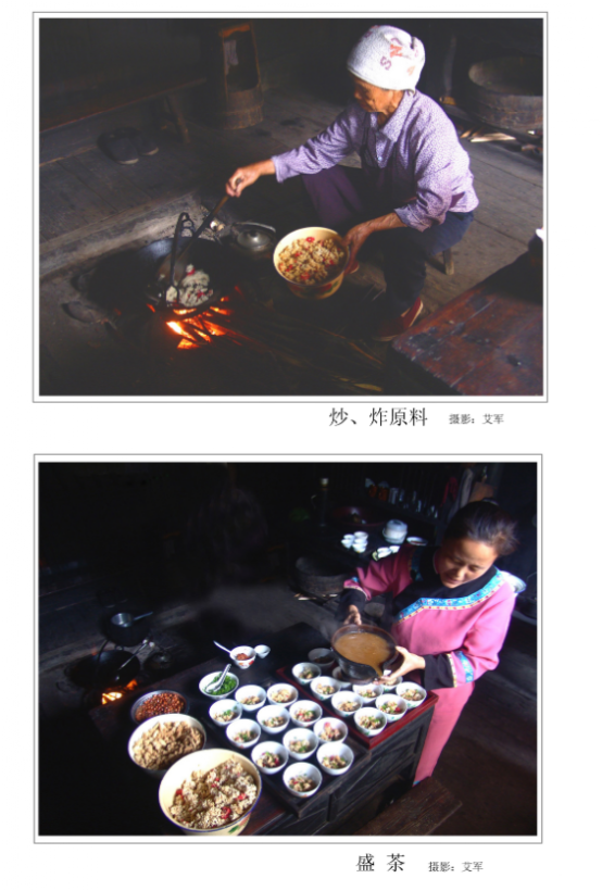 城步苗族先民的居住環境山高水冷,氣候嚴寒,蠻煙瘴氣和毒蛇蚊蟲橫行。在缺醫少藥的古代,為了本民族的生存和發展,他們只好靠多飲茶、喝濃茶抵御蠻煙瘴氣,防治疾病。但過多的喝濃茶對身體反而不適。于是,他們試行在茶湯中加入適量的雜糧和調味品,既能預防疾病,又能充饑解渴,于是便形成“油茶”的雛形。通過漫長時間的演變,才形成今天的油茶。在長期受外地生活方式的猛烈沖擊下,這種喝油茶的古俗仍然頑強地保留至今,說明苗鄉油茶具有其頑強的生命力。