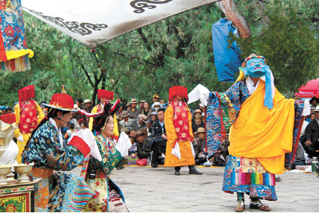 覺木隆藏戲是藍面具藏戲劇種中最重要的一個流派。它是所有藏戲班子和流派中藝術方面發展最為完備、豐富,影響最大、流傳也最廣的一種。覺木隆藏戲班是舊西藏唯一帶有專業性的劇團,歸西藏地方政府“孜恰列空”和功德林寺共同管理,但無薪俸,除參加雪頓節會演可得賞銀和食物外,其他時間則到西藏各地以賣藝為生。他們唯一的權力是可以任意挑選演員。他們持有西藏地方政府發的一紙文書,聲明他們所到之處,在業余藏戲班子中如發現優秀的苗子或尖子,可以馬上挑走,該業余班子不得阻攔。這個戲班最初是拉薩西郊堆龍德慶區覺木隆村的民間戲班,故稱覺木隆藏戲班。