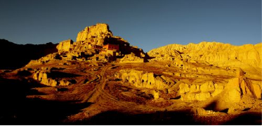 次仁加布說,“阿里”在藏語里是“領地”或“領域”的意思。吐蕃王朝崩潰后,前藏和后藏已經失去了吐蕃的領地,只有在西藏西部建立了吐蕃王后裔的王朝。所以吐蕃最后的領地就叫做“阿里”。這個地名是10世紀之后才出現的。吉德尼瑪袞在嘎爾東建立辜卡尼松城堡,成了阿里的統治者。辜卡尼松城堡非常重要,規模也不小,東南西北有四個城門,城墻都分里、中、外三層,還有上百個居住遺址。圍繞著小山丘曾經有過5個衛城。在阿里歷史上,這是一個至關重要的轉折點。