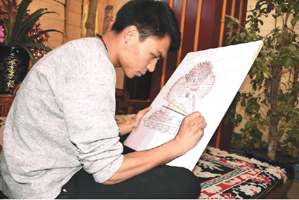 技藝上的登峰造極,次嘎把這一秘笈歸結(jié)成幾個(gè)平常的字眼:“興趣和堅(jiān)持”。從小受家族文化的熏陶,兩個(gè)兒子對(duì)傳統(tǒng)文化有著濃厚的興趣。薪火相傳也成了次嘎肩上的責(zé)任。20出頭的大兒子扎西拉達(dá)穿著白T恤,皮膚白皙、手指纖長(zhǎng)、陽(yáng)光帥氣,立志要子承父業(yè)。“父親告訴我即便是要做一名手工藝人,也不能放棄對(duì)文化知識(shí)的學(xué)習(xí),從小便把我送到內(nèi)地學(xué)習(xí)。現(xiàn)在,我長(zhǎng)大了,該回來(lái)了。” 扎西拉達(dá)的話語(yǔ)堅(jiān)定。