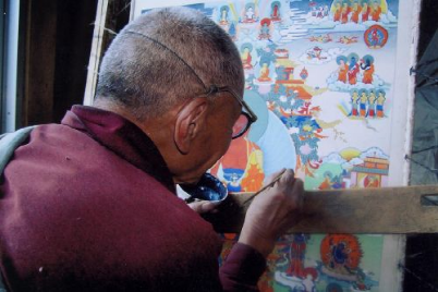 嘎瑪噶赤畫派,屬西藏東部地區畫派。相傳由郎卡扎西所創,與其同時期的八世噶瑪巴米久多吉,奠定了嘎瑪噶赤畫派的理論基礎。十六世紀,嘎瑪噶赤畫派開始盛行康區,先后涌現出了一批大師。嘎瑪噶赤畫派在發展過程中,由于生存地域與漢地緊密相連,在政治、經濟、文化上的交往也相對頻繁,尤其在繪畫方面,多受漢地明代以后工筆重彩畫和四川綿竹木版年畫的影響。嘎瑪噶赤畫派在嚴格繼承傳統繪畫的基礎上大膽創新,吸收漢族畫家工筆重彩之精華,注重抒情寫意之風格;講究色彩對比,結構嚴謹,畫工細膩,最后達到精美絕倫之境界。其總體風格形成了有別于衛藏地區門唐、欽澤兩大畫派的特征。二十世紀初,噶瑪噶赤畫派藝術更為完善和成熟。