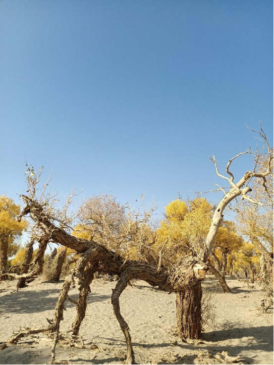 胡楊是多變的,春夏為綠色,深秋為黃色,冬天為紅色。胡楊又是堅強的樹種,有“生而千年不死,死而千年不倒,倒而千年不朽”之說。全國有多處胡楊林區,但最為美麗,最為壯觀,胡楊林最為聚集的地方就是額濟納旗胡楊林了。