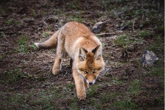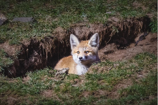不知不覺中,太陽已經下山了。面對三只小家伙從警覺、驚喜、歡快到煩躁、無奈、焦慮的神態變化,我對記錄了小赤狐一天的喜怒哀樂而高興,又為小赤狐整整一天的忍饑挨餓而擔憂,趕緊收拾攝影器材,撤離它們賴以生存的家園,還它們一個不被打擾的寧靜……