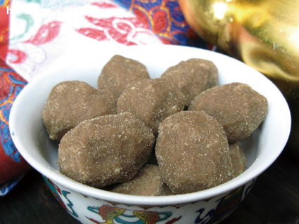 甘肅甘南藏區的灌湯包子、蕨麻米飯是有名的特色食品。做蕨麻米飯時,先將大米和蕨麻洗凈加適量的水在鍋里煮,待煮熟后加酥油白糖食用,蕨麻是一種野生食材,也叫人參果,味甜且富有營養。灌湯包子是牛肉或羊肉加板油和蔥剁碎,再加各種佐料和成餡兒,餡兒要很稀,然后包成包子,蒸熟的包子里面有湯,所有叫灌湯包子。藏族的特色食品很多,土豆咖喱飯、灌血腸、灌肉腸、灌羊肺等。