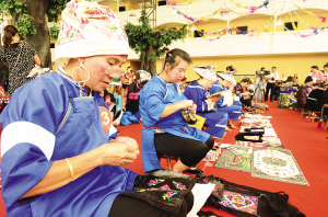 圖為活動(dòng)之一的貴州省黔東南州第二屆“百佳繡娘”決賽現(xiàn)場(chǎng)。經(jīng)過層層選拔出的100名繡娘在此飛針走線,同秀技藝,展現(xiàn)了少數(shù)民族民間文化獨(dú)特的藝術(shù)魅力。