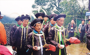 據(jù)介紹,舉辦牯藏節(jié)是為了給苗族人家?guī)?lái)幸福。牯藏節(jié)第一天,牯藏頭(由村里5位精干的已婚男子組成)在村中挑選連同自己在內(nèi)的12名德高望重的長(zhǎng)老,組成一支祭祀隊(duì)伍,安排祭祖。他們用新砍伐的木竹編織成坐榻,讓6個(gè)年輕人坐于其上,30余人抬著他們,前面長(zhǎng)老開(kāi)道,吹起祭祖蘆笙,跳起祭祖舞,抬著祭祖飯,向祭祖堂緩緩走去,進(jìn)行殺牛豬、祭奠等。