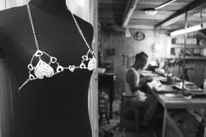 “銀飾胸罩”重約200克。據龍太陽介紹,他打制“銀飾胸罩”源于對妻子的愛。妻子長期在田間勞作,夏季汗水貼著內衣,悶熱難受。于是,龍太陽決定給老婆打制一件精致、涼爽的“銀飾胸罩”。這件耗時33天制成的“銀飾胸罩”,是用發絲般纖細的銀絲制成的,穿著舒適涼爽。