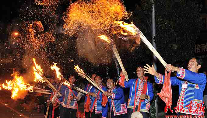 火把節是彝族傳統節日中最普遍、最隆重、最富有民族特色的節日,一般在農歷六月二十四至二十六舉行,楚雄彝族火把節于2006年5月經國務院批準為第一批國家級非物質文化遺產保護項目。節日內容集民俗活動、經貿活動、文體活動和社交活動于一體,像磁石一樣吸引著各族群眾,許多人就是通過參加火把節認識了彝族,知道了楚雄彝族自治州的。節日期間,各族人民載歌載舞,耍火把、放焰火,火把節成了弘揚彝族文化、促進對外交流、開展經貿活動和各族人民大團結的盛會。