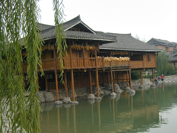 壯族多聚居在崎嶇的山區和群峰之間的丘陵地帶,壯族人民因地制宜創造了獨居特色的干欄式建筑。壯語稱屋為“欄”或“干欄”。干欄建筑使用木(或竹)柱做成離地面相當高的底架,再在底架上建造住宅。樓上住人,樓下豢養牲畜和貯存物件。這種住宅適于潮濕多雨,地勢不平的南方山區。
