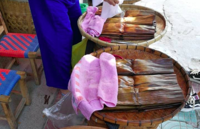 褡褳粑是布依族人民喜愛的傳統(tǒng)食品,因其如褡褳袋而得名。每逢農歷七月十五日(中元節(jié)),布衣族人民均普遍制作褡褳粑,作為祭祀祖先的供品。相傳兩千多年前,祭祖是用當?shù)厥a的芭蕉果和普通糍粑,后來發(fā)展為用芭蕉和糯米蒸熟,加上紅糖,制成甜味糍粑。又經過多次改進才形成現(xiàn)在的褡褳粑。如今,除七月十五日以外,逢年過節(jié),宴客,走親訪友,也要制作褡褳粑。蒸熟后的褡褳粑呈長方形,色澤醬黃,香甜細膩,具有芭蕉果和芭蕉葉的特殊香味。熱吃軟滑細膩,冷吃清涼甜潤,烙食香脆。