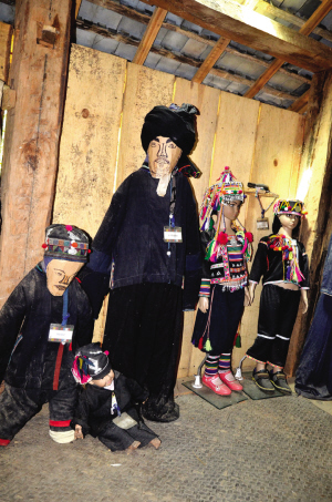 小樓不算亮堂,卻處處透著一股濃郁的哈尼族生活氣息。哈尼族先民們曾使用的紡線機、織布機、竹編的背簍、色彩艷麗的傳統服飾……每一件物品都展示了哈尼人的心靈手巧和聰明才智。