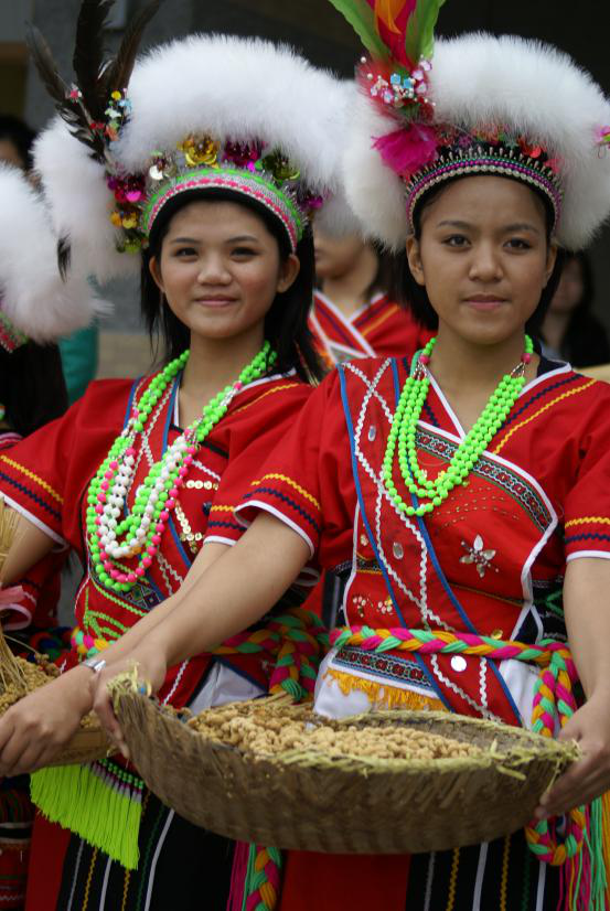 高山族過去以裸身為美,裸形赤足,僅以獸皮、樹皮及植物纖維制作的幅布蔽體,有鑿齒、穿耳的習(xí)俗。接觸漢文化后,逐步形成了男著長衫、女著裙裝的習(xí)慣,衣服除了獸皮和樹皮外,還喜好用自織麻布,飾以彩色紋樣。
