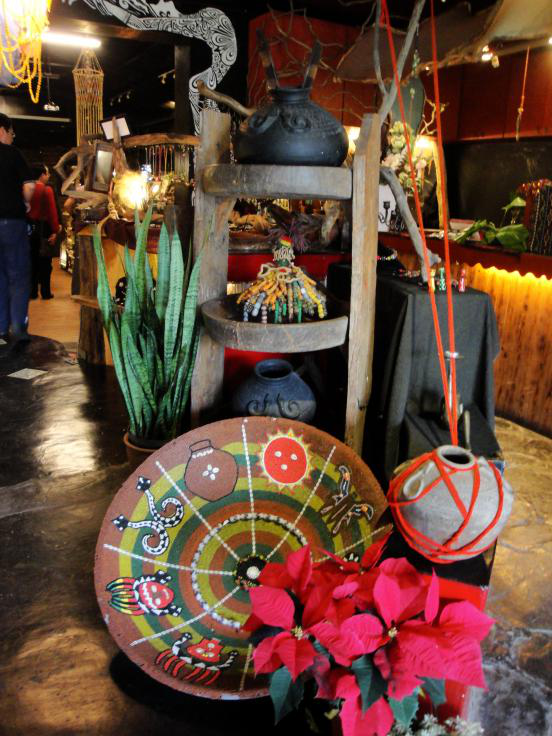 雕刻。高山族的雕刻以木雕和石雕為主,金屬雕刻是現代才出現的。排灣和魯凱兩個族群的雕刻工藝最為發達,也最具特色。木板雕刻的紋樣與石壁雕刻大致相似,只是木板雕刻多施色彩,少則紅、白兩種色,多則加上黃、橙、藍、綠色不等,鮮艷亮麗,引人注目。一般住屋內外都有雕刻,貴族的住屋裝飾尤其突出。立柱和壁板雕刻的主題多為敘述家族神話、傳說起源或表彰家族的特殊事跡。雕刻的題材以神話傳說、狩獵生活、祖靈像為主;木雕以人像、人頭、蛇紋、野豬和鹿紋為主;其他還有重圓紋、太陽紋、網形、風車形,四葉形、人體生殖器等等。這些題材與排灣人的原始宗教、神話內容有密切的關聯。住屋的木雕取材于質地堅硬的樟木、臺灣櫸、二葉松等喬木,而木桶、木臼、木椅等器物,除了堅硬木材外,也選擇樟木,烏心石等。至于木匙、煙斗、木梳則喜歡用月橘之類的材質。