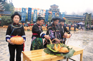 2012年10月28日,貴州省雷山縣達地水族鄉舉行“走進水鄉達地,體驗水鄉風情”建鄉20周年慶典暨水族“瓜年”活動。“瓜年”上,5000個大黃南瓜特別引人注目。大南瓜營造了濃濃的鄉情與年味,引得眾多參加節慶的鄉親、游客紛紛留影紀念。