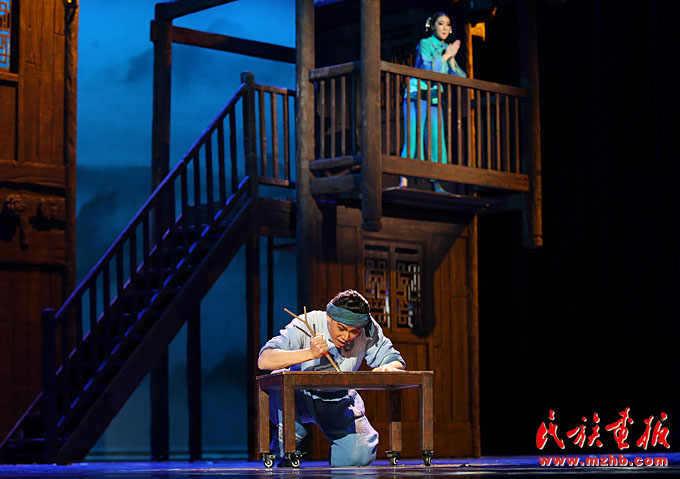 2017年12月28日,來自貴州的首部水族題材舞劇《木樓古歌》在民族劇院上演。舞劇中弘揚的至純至善的品質和捍衛家國尊嚴的勇氣、跌宕起伏的劇情和演員們嫻熟到位的表演以及神秘新鮮的民族文化符號,都深深感染著首都觀眾?!赌緲枪鸥琛酚酶哌h的立意和高超的藝術水準為北京歲末的演出畫上了圓滿的句號。