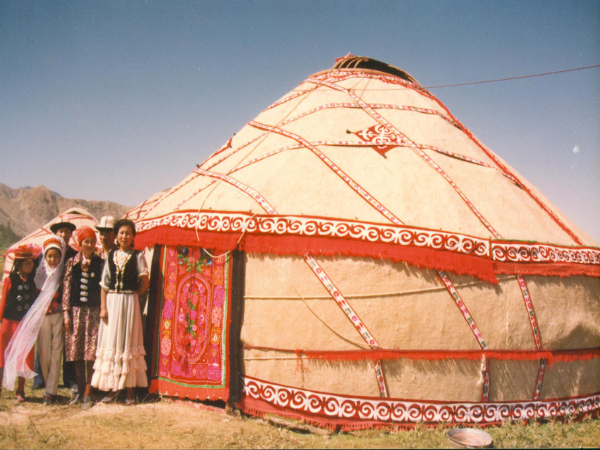 距今幾千年前,柯爾克孜族的先民堅昆人就在西伯利亞的葉尼塞河上游從事逐水草而居的游牧生活,后來因各種歷史原因,柯爾克孜人逐漸西遷中亞以及天山南部,逐漸形成了現代柯爾克孜族。柯爾克孜人長期在高緯度低溫寒冷地區以游牧為生,為了便于安裝、拆卸與運輸,柯爾克孜人創造了非常符合游牧生活的氈房,氈房整體框架為木質結構,氈房框架之外覆蓋一層厚厚的羊毛氈子,具有很好的防風抗寒,御寒保暖的作用。