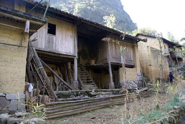 干欄石屋(亦稱干欄石樓)為進(jìn)入20世紀(jì)后多數(shù)農(nóng)民的住屋,是凹形矮腳石木結(jié)構(gòu)干欄式,因墻基用石頭砌成而得名。上層住人,下層圈養(yǎng)牲畜及堆放農(nóng)具和柴草,可以防潮。整棟房為石基、泥墻、木柱、瓦頂。每棟以用銜條數(shù)和間數(shù)多少區(qū)別大小。從屋頂?shù)轿蓍軆蛇叄?3根銜條的叫檐十三,用15根的叫檐十五,以此類推。檐十三屋內(nèi)較窄,不便擺放家具雜物;檐十九較寬敞,但屋檐低矮,室內(nèi)陰暗。以檐十七居多,屋里寬敞,通風(fēng)采光也良好。多為三、五、七、九間,大門居中,兩邊對(duì)稱。