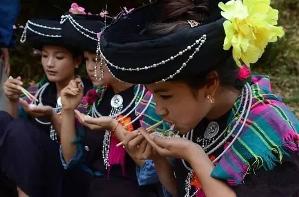 阿昌族以大米為主食,尤其喜歡食用大米制成的“米線”。他們喜歡吃腌臘肉、干牛肉以及腌菜、腌竹筍等酸性食品,還喜歡喝自釀的米酒和白酒。白酒用糯米飯加甜酒曲發酵制成,味道香甜可口、生津解渴、回味無窮。除此之外,阿昌族還有嚼煙的習慣。