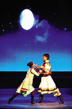 彩虹是鄂溫克族的吉祥物。該劇運用象征的手法,通過民族歌舞的形式將具象化的表演和意向化的彩虹融入到劇情中,反映了鄂溫克人民熱愛生活、熱愛家園、不屈不撓的奮斗精神,同時也展現(xiàn)了鄂溫克民族長久以來具有的深厚民族文化底蘊和絢麗多彩的民族風(fēng)情。